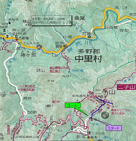 坂本・二子山登山口~股峠~東岳(往復)~股峠~西岳(往復)~股峠~ 坂本・二子山登山口 |