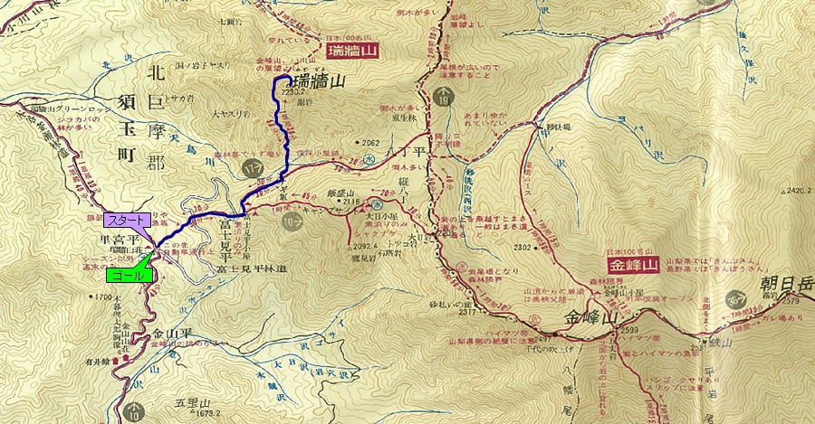 瑞牆山まで:2時間50分 全行程 :5時間00分 |