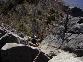 <<乾徳山頂直下のクサリ場>>