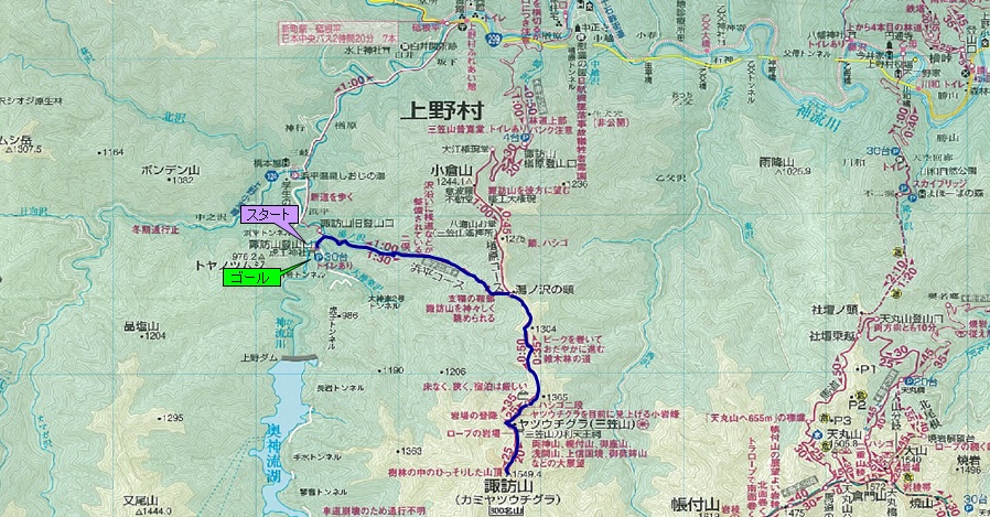 浜平~湯ノ沢の頭~ヤツウチグラ~諏訪山(往復) |