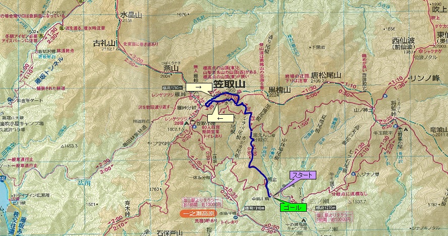 中島川橋登山口~黒えんじゅ分岐点~水干~笠取山~黒えんじゅ分岐点~ 中島川橋登山口 |