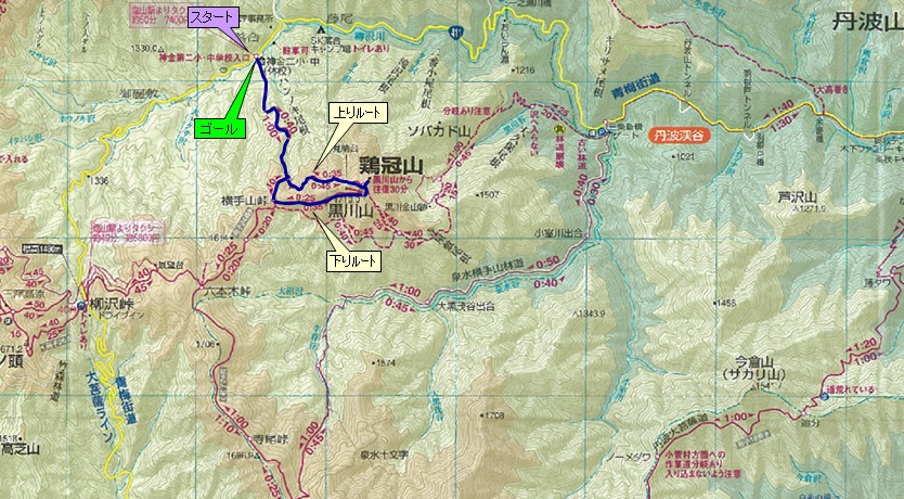 落合から鶏冠山~黒川山~横手山峠(周遊コース) |