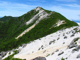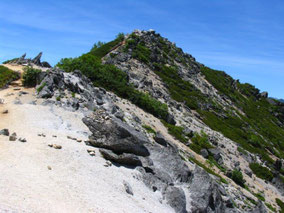 ※中道登山道は、全てが急登の連続であったが山頂まで最短距離であることが 証明された。 |