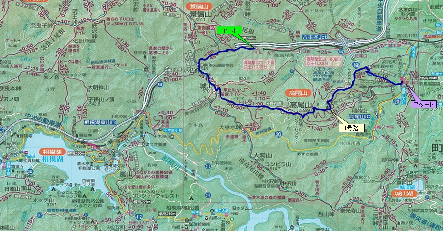 高尾山まで:2時間00分 城山まで :3時間00分 全行程 :4時間05分 |