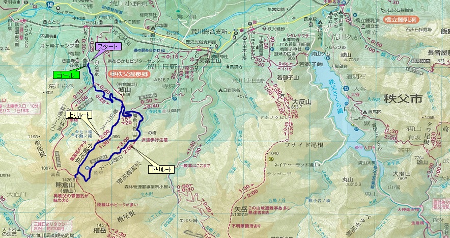 熊倉山まで:2時間25分 全行程 :5時間05分 |