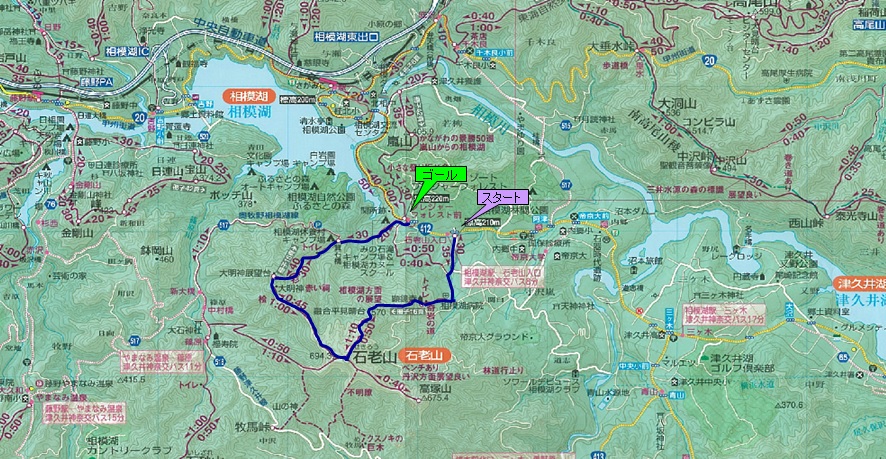 石老山入口バス停~顕鏡寺~ 融合平見晴台~石老山~大明神展望台~ 箕石橋~プレジャーフォレスト前バス停 |