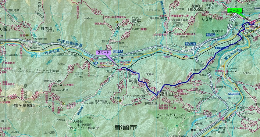 高川山まで:1時間40分 全行程 :4時間15分 |
