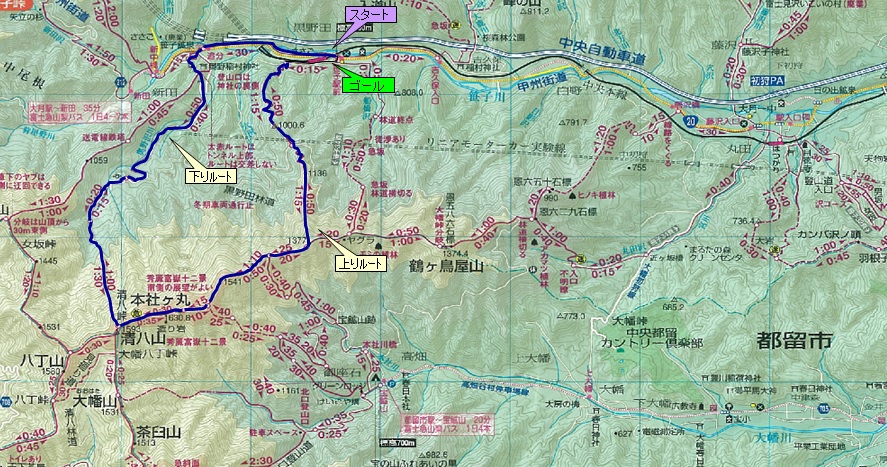 笹子駅~角研尾根登山口~角研山~本社ヶ丸~清八峠 ~笹子駅 |