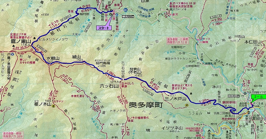 鷹ノ巣山まで:3時間05分 全行程 :6時間40分 |