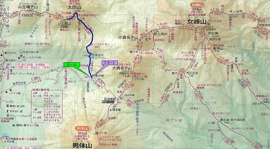 太郎山まで:2時間40分 全行程 :5時間25分(小太郎山往復時間含む) |