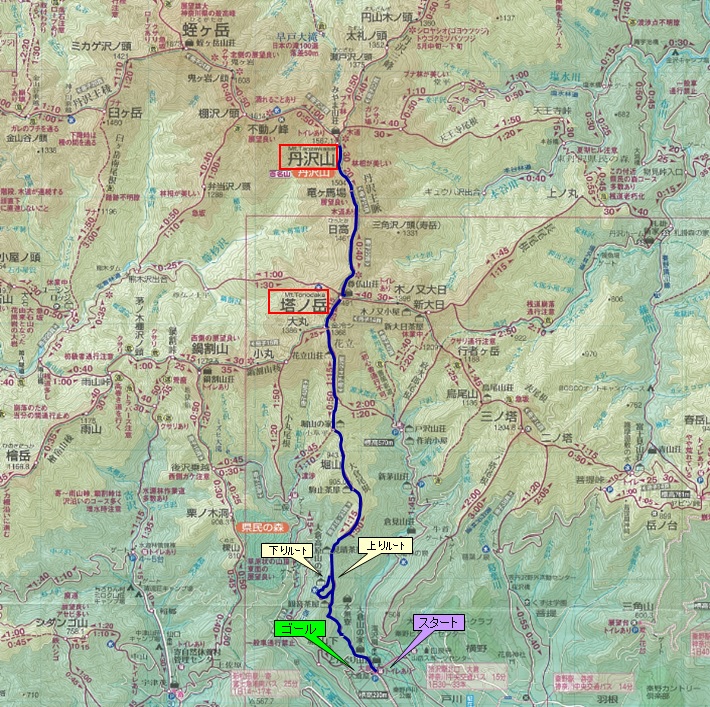 塔ノ岳まで:3時間30分 丹沢山まで:4時間40分 全行程 :8時間00分 |