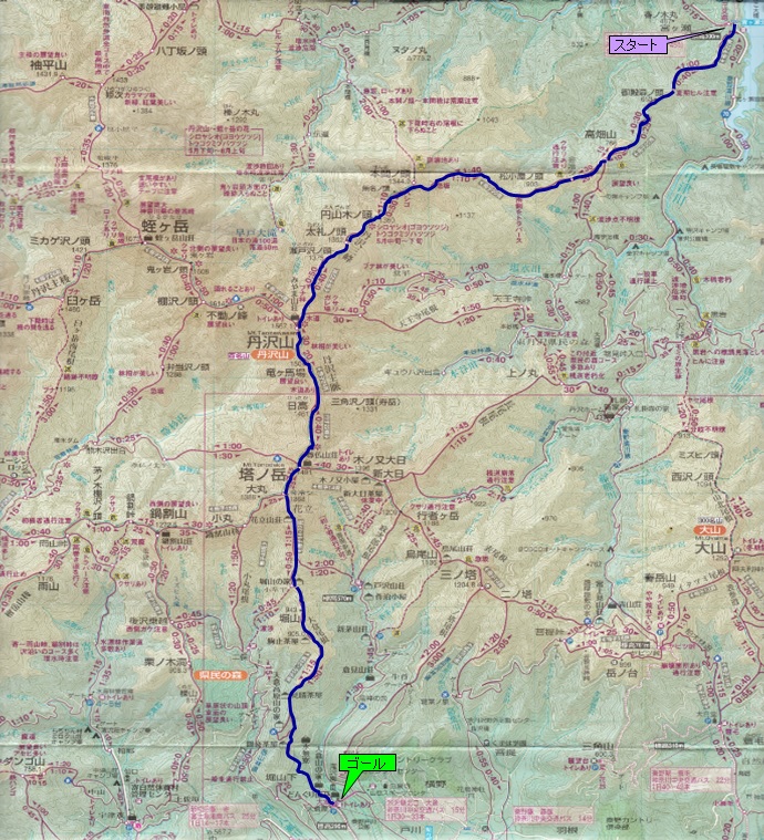丹沢山まで:5時間55分 塔ノ岳まで:6時間55分 全行程 :9時間15分 |
