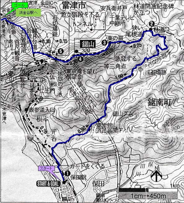 <<保田駅~林道口(鋸山登山口)~鋸山>>
