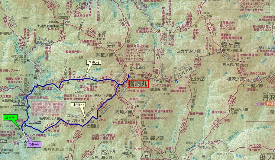<<檜洞丸山頂~(ツツジ新道)~西丹沢自然教室>>