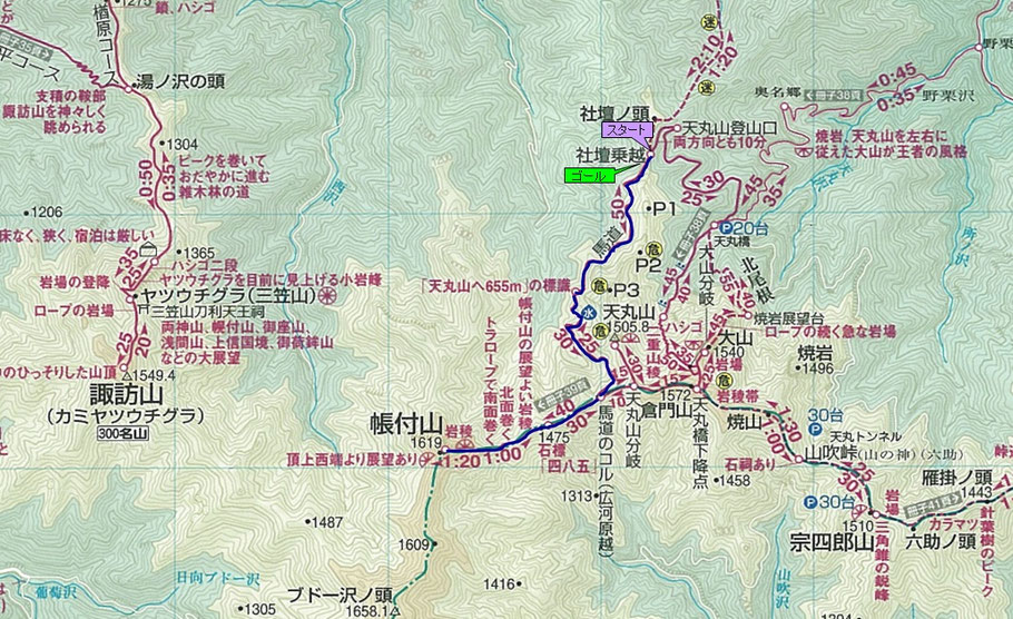 帳付山まで:3時間20分 全行程 :6時間05分 |