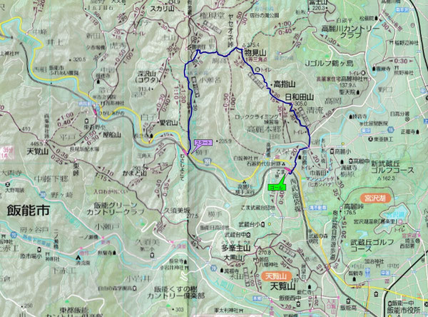 物見山まで : 50分 日和田山まで:1時間30分 全行程 :2時間20分 |