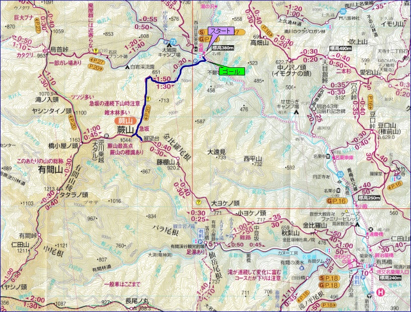 蕨山まで:2時間10分 全行程 :4時間00分 |