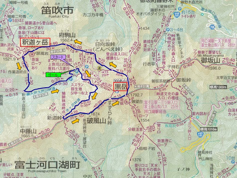 釈迦ヶ岳~釈迦ヶ岳登山口~すずらん群生地駐車場 |
