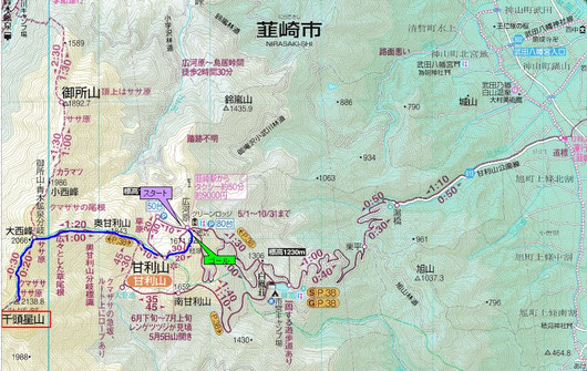甘利山まで : 30分 千頭星山まで:2時間30分 全行程 :4時間20分 |