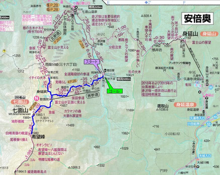 七面山まで:4時間40分 希望峰まで:5時間05分 全行程 :8時間50分 |