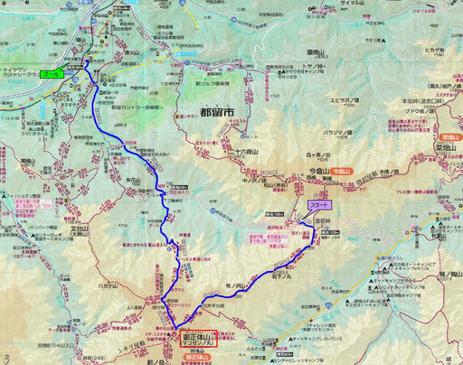 自宅5:05頃発 ↓(徒歩) 新小平駅5:33着5:54発(JR武蔵野線府中本町行き) ↓(JR武蔵野線) 西国分寺駅5:57着6:00発(JR中央線高尾行き) ↓(JR中央線) 高尾駅6:23着6:30発(JR中央本線大月行き) ↓(JR中央本線) 大月駅7:06着7:25発(富士急行線河口湖行き) ↓(富士急行線) 都留市駅7:40着8:25発(富士急バス道坂隧道行き) ↓(富士急バス) 道坂隧道8:46着9:00発(登山開始) 今倉山分岐9:10着9:11発 岩下の丸山頂9:53着10:00発 牧ノ沢山10:20着10:21発 御正体山頂11:20着(昼食)12:00発 峰宮跡12:20着12:23発 峰宮跡展望台12:25着12:37発 車道合流13:17着13:18発 車両通行止柵13:45着13:45発 三輪神社14:05着14:13発 沢田橋バス停14:32着14:32発 谷村町駅15:10着(登山終了) 谷村町駅15:56発(富士急行線大月行き) ↓(富士急行線) 大月駅16:25着16:33発(JR中央本線高尾行き) ↓(JR中央本線) 高尾駅17:14着17:15発(JR中央線東京行き) ↓(JR中央本線) 国分寺駅17:44着(夕食) 自宅18:55着 |