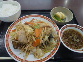中央自動車道の双葉SAで野菜炒め定食を頂きました。。🍴