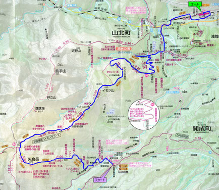 矢倉岳まで:1時間40分 全行程 :4時間50分 |