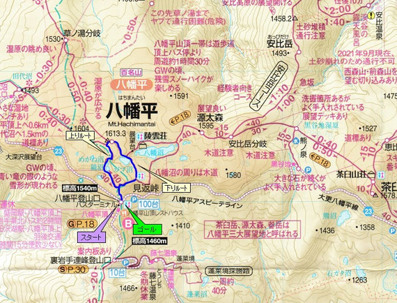 <<八幡平山頂~八幡沼~見返峠~山頂駐車場>>