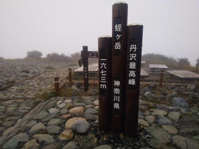 天気予報では曇り時々晴れの予報であったが丹沢山中では小雨、展望無しの天候だった。