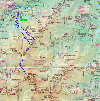 旧青根小学校駐車場から八丁坂の頭分岐~姫次~蛭ヶ岳~姫次~青根分岐~旧青根小学校駐車場 往路:八丁坂コース 復路:釜立林道コース |